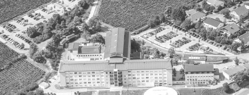 Grünstadt vor dem Haupteingang des Krankenhauses, gegenüber der